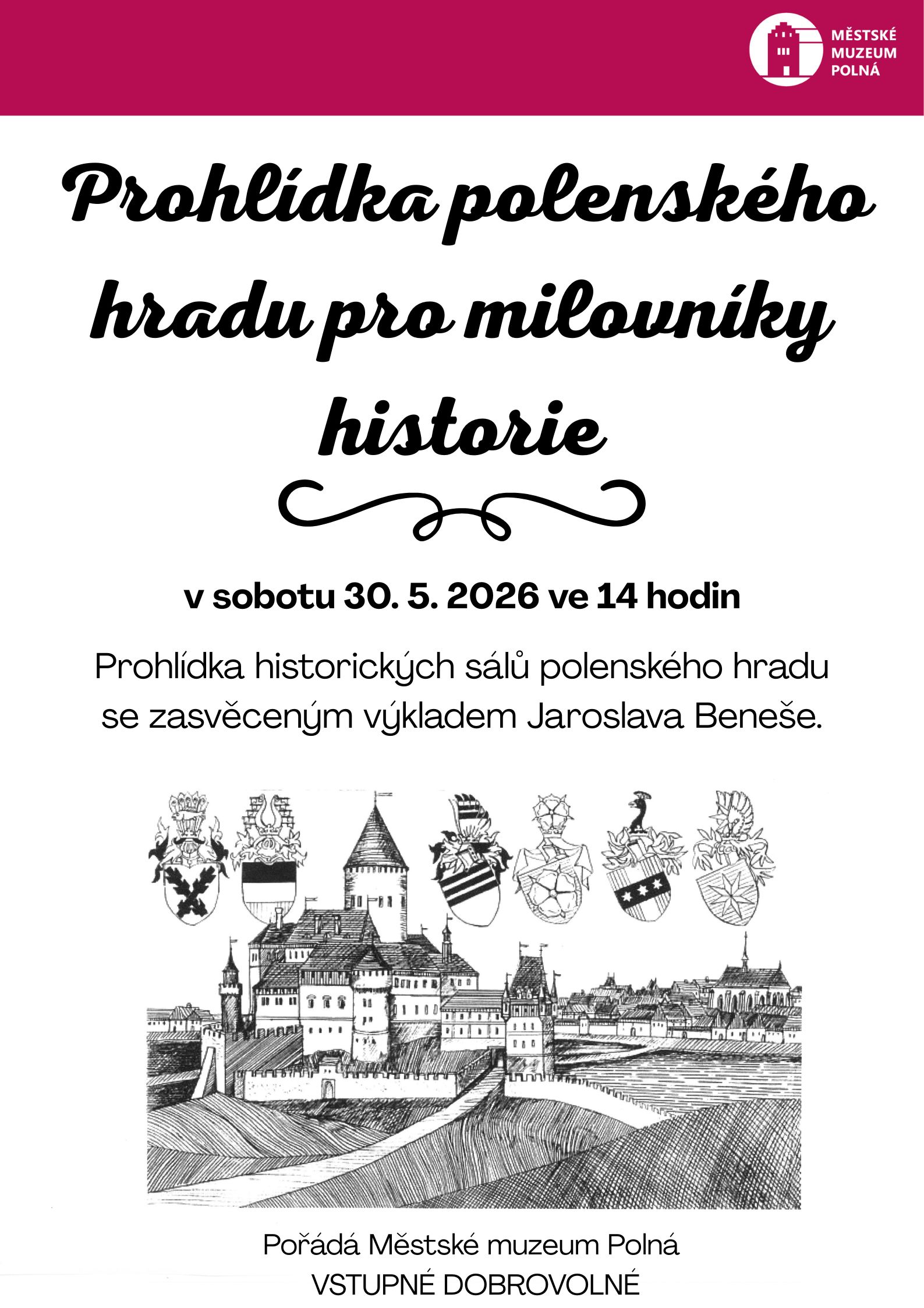 Jsme Městské muzeum Polná, příspěvková organizace města, sídlíme v areálu polenského hradu a zámku.