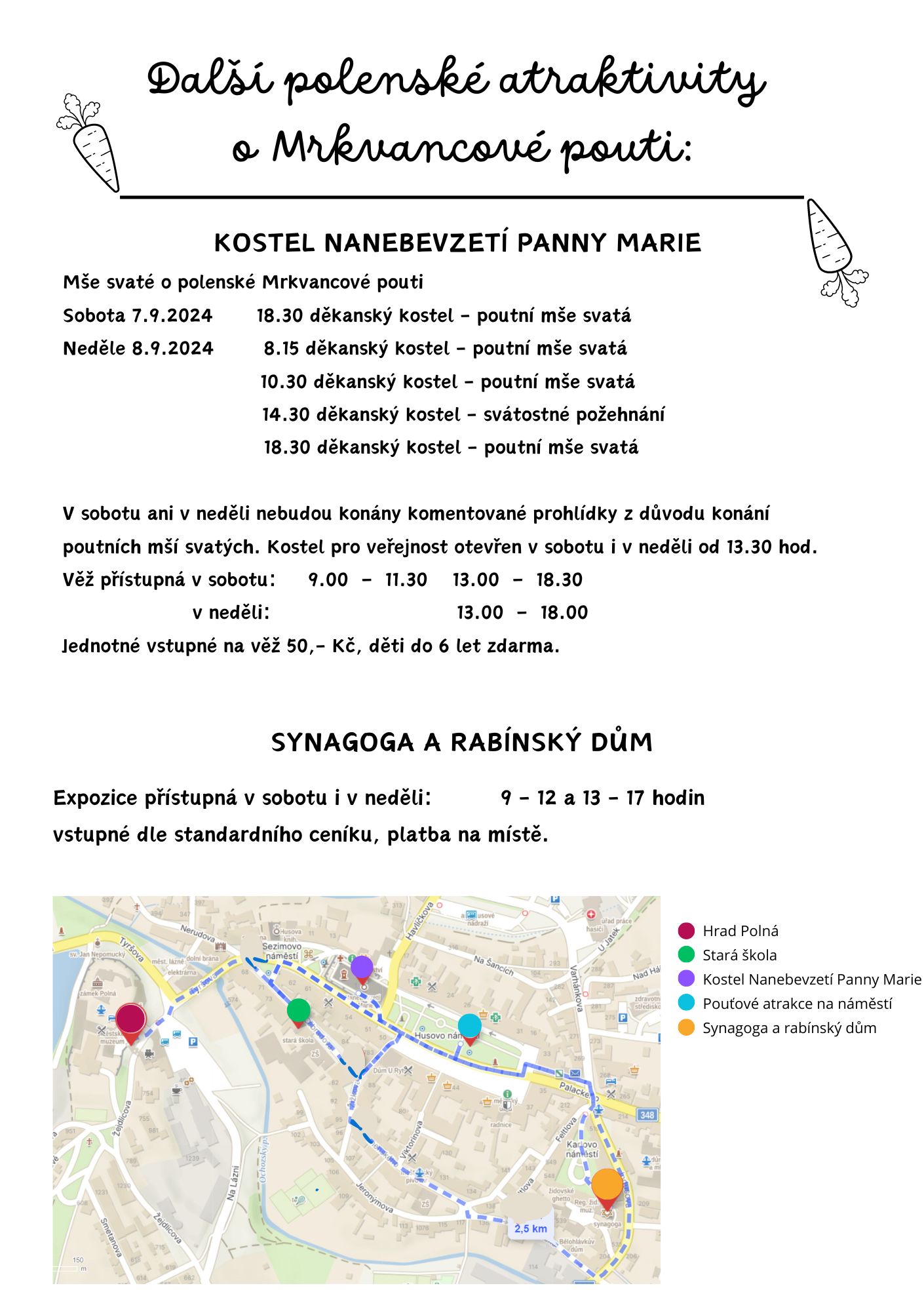 Polenská Mrkvancová pouť vychází historicky vždy na druhou neděli v září, letos tedy na víkend 7. - 8. 9. 2024.