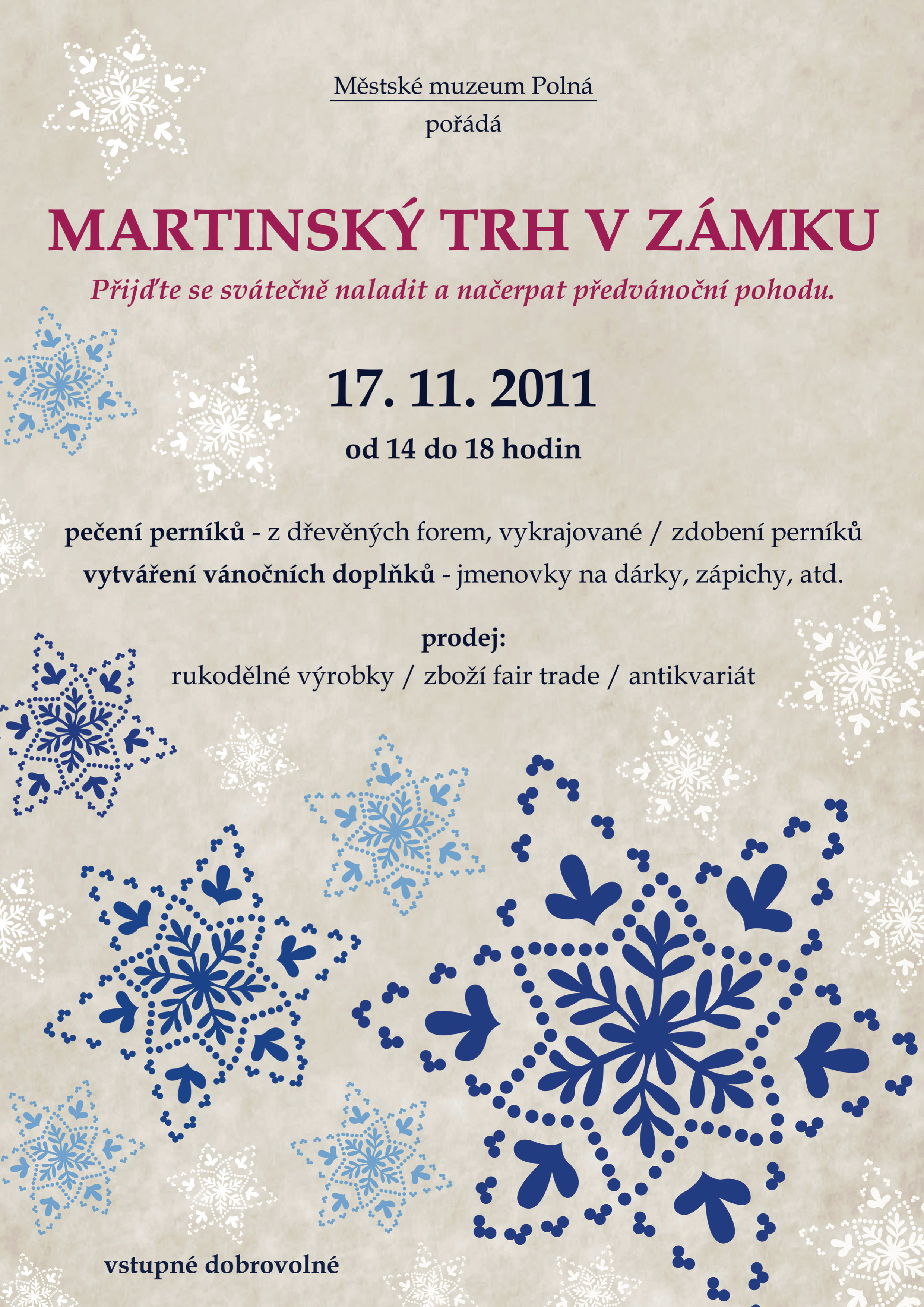 - přijďte se svátečně naladit a načerpat předvánoční pohodu
