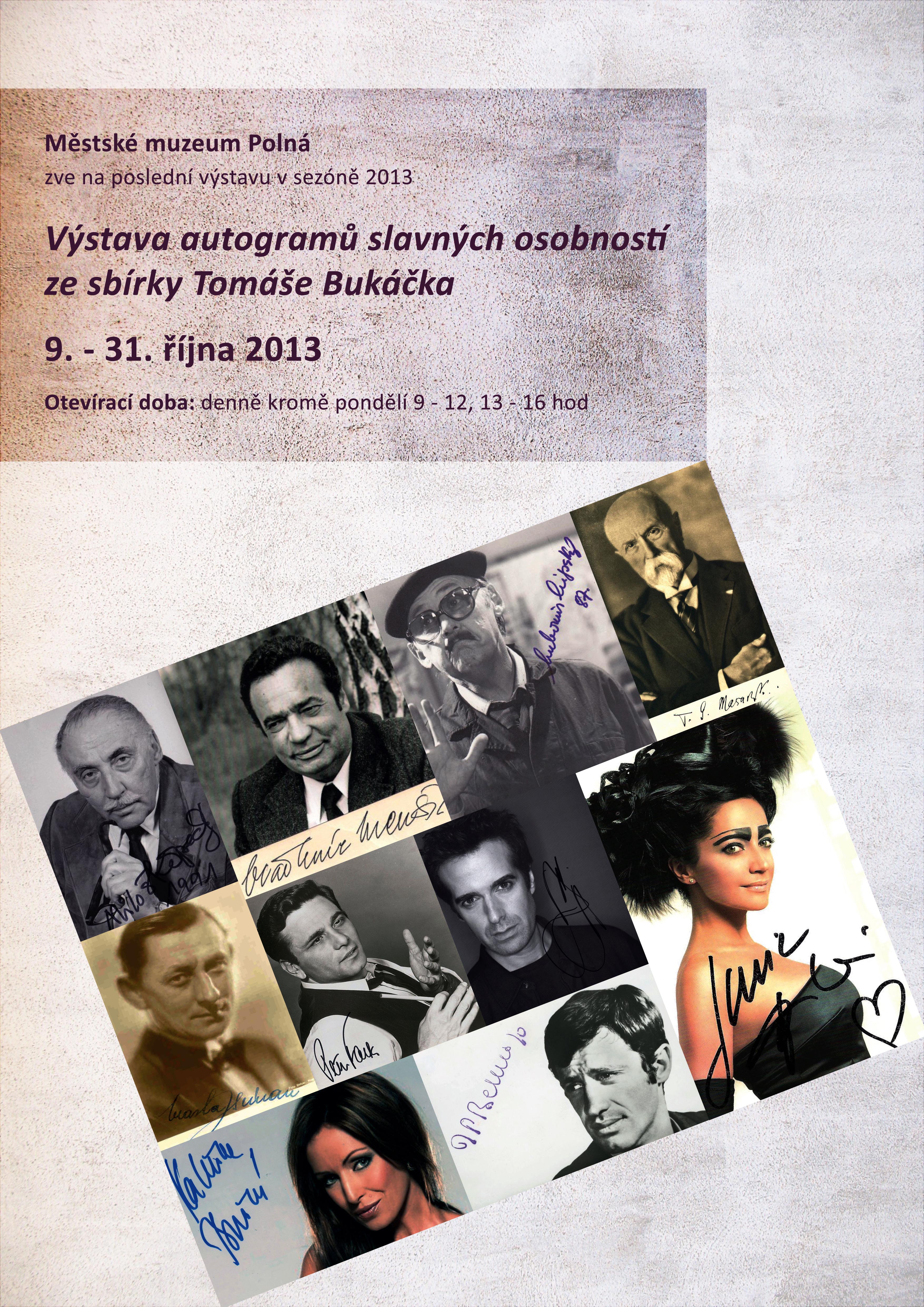 - soukromá sbírka autogramů Tomáše Bukáčka čítá již více než dvanáct a půl tisíce podpisů slavných osobností. Patří mezi ně podpisy všech našich prezidentů, ale i podpisy zahraničních politiků, sportovců, herců, zpěváků, spisovatelů, výtvarníků,... Ty nejzajímavější "kousky" vybral majitel pro výstavu v Městském muzeu Polná.
