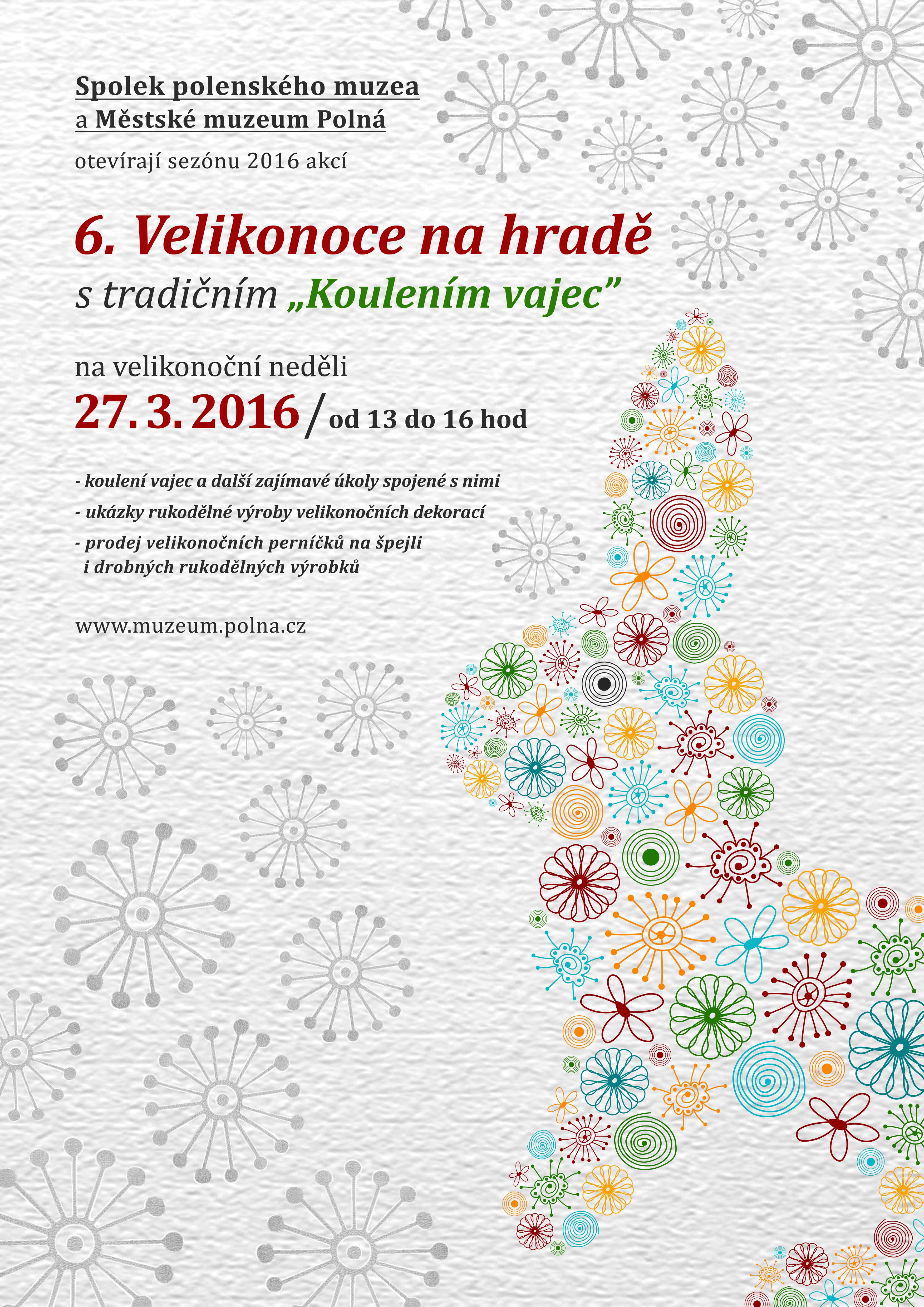 - velikonoční odpoledne spojené s koulením vajec i dalšími soutěžemi zejména pro děti na nádvoří hradu. V prostorách expozic seznámení s velikonočními tradicemi, ukázka výroby velikonočních dekorací, možnost zakoupení rukodělných drobností i perníčků na špejli.