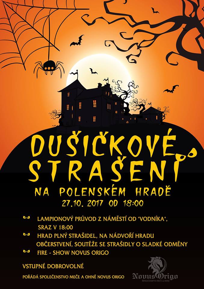 - hrad plný strašidel v podání členů Novus Origa. Zahájení na Husově náměstí u kašny Hastrmanky, přesun lampionovým průvodem do areálu hradu a zámku. Na nádvoří hradu, parkánu i ve sklepeních soutěže a hry se strašidly o sladké odměny. Soutěž o nejhezčí dětský kostým. K občerstvení domácí dýňová polévka.