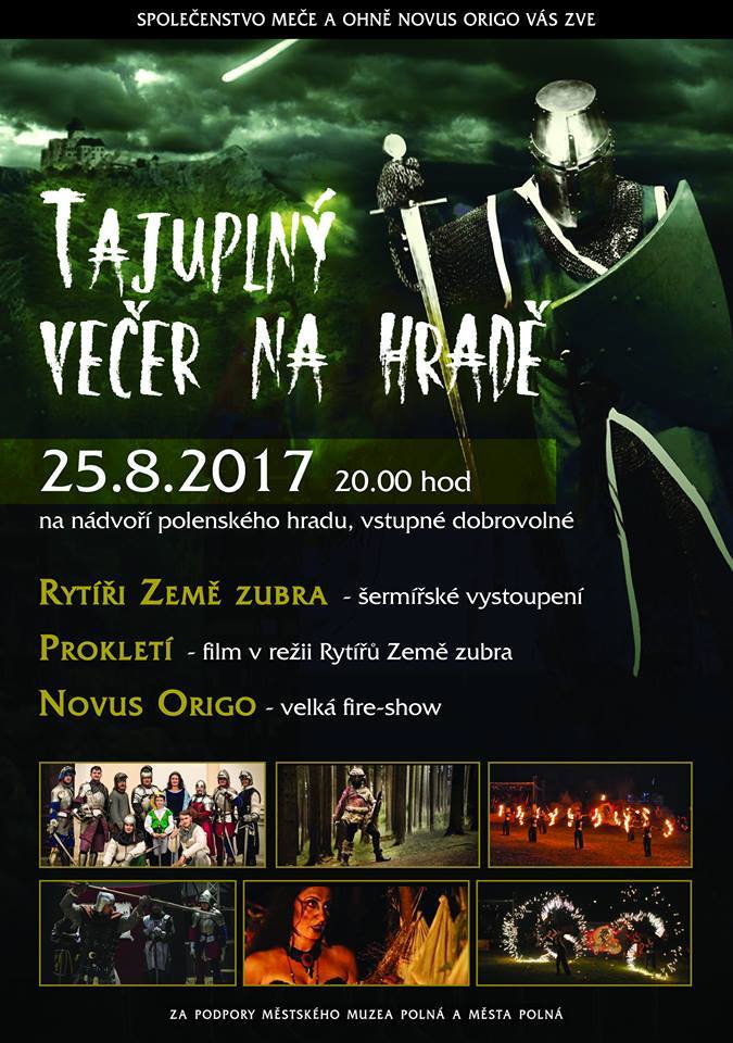 - program na nádvoří polenského hradu protkaný atmosférou léta a šermu. Ukázka šermířských soubojů v podání členů skupiny Rytířů Země zubra. Promítání filmu "Prokletí", který natáčeli Rytíři Země zubra mimo jiné na Polenském hradě a ve spolupráci se společenstvím ohně a meče Novus Origo. Noční fire-show Novus Origa.